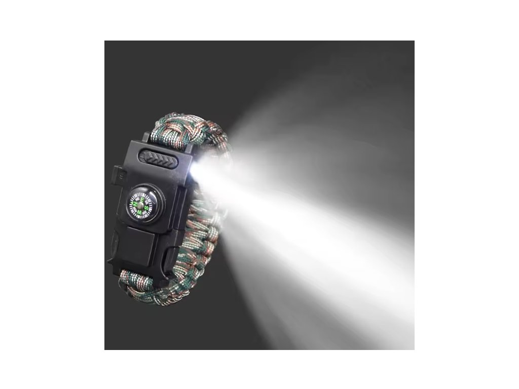 Tento outdoorový náramek má navíc v sobě zabudovaný velmi přesný kompas, díky čemuž hned víte, jestli jdete správným směrem. Náramek s kompasem máte neustále na ruce, takže se vám nemůže ztratit. Šetříte čas, energii, nervy a peníze.